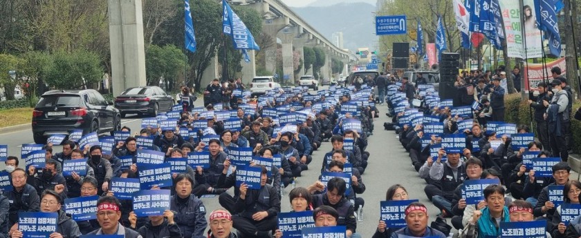 금속노조 경남지부가 3월 30일, 고용노동부 창원지청 앞에서 기자회견을 열고, 특별근로감독 결과 엄청난 부당노동행위와 임금체불, 산업안전법 위반이 확인된 이엠코리아와 신화정공 자본을 규탄했다. 고용노동부 창원지청은 2월23일부터 3월 6일까지 2주 간 이엠코리아에 대한 특별근로감독을 진행했다. 노동부는 다수의 해고자가 발생하고, 부당노동행위가 확인된 사업장에 대한 조치라고 밝혔다. 특별근로감독 결과 19억에 달하는 임금체불과 불법파견, 산업안전법 위반이 밝혀졌다. 뿐만 아니라 사측은 이엠코리아지회 조합원들의 조합비를 공제하고 금속노조에 이체하지 않는 등 부당노동행위, 공금유용, 배임 등 범죄 행위를 저질렀다. 김일식 금속노조 경남지부장은 “이엠코리아가 사명을 바꿔도 그간의 부당노동행위와 임금체불 등 책임은 사라지지 않는다”며 “고용노동부 특별근로감독 결과 20억 원대에 달하는 법 위반이 확인된 것은 자본의 책임 회피에 대한 정당한 조치”라고 밝혔다. 이어 “사측이 조합비를 공제하고도 노조에 전달하지 않는 등 명백한 부당노동행위를 이어가고 있다”며 “신화정공 그룹 전반에 대한 상시·특별 근로감독이 필요하다”고 주장했다. 그러면서 “부당해고자 복직과 임금체불 해소, 안전한 작업환경이 보장될 때까지 총력 투쟁에 나서겠다”며 노동부의 강력한 감독과 법적 조치를 촉구했다. 최정식 이엠코리아지회장은 “노동부 장관에게 특별근로감독을 직접 요청했고, 부당해고 가능성에 대해 명확한 대응을 약속받았다”고 밝혔다. 그는 “지노위가 부당해고와 부당노동행위를 인정하고 원직 복직을 명령했음에도 사측은 이를 이행하지 않고 있다”며 “이는 법의 명령을 무시하는 행위”라고 비판했다. 또 “노조 사무실과 간부 자택 등에 대한 압수수색은 수사가 아닌 노조 탄압이자 협박”이라며 “조합원 단결을 흔들기 위한 시도”라고 주장했다. 이어 “부당해고 철회와 복직을 반드시 쟁취하고, 부당노동행위가 중단될 때까지 끝까지 투쟁하겠다”고 강조했다.