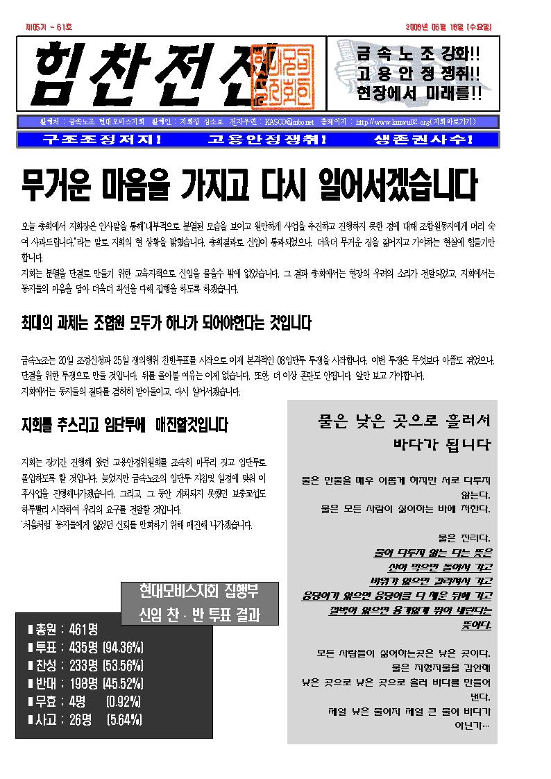 - 이전글힘찬전진 62호 - 쟁의행위 찬반 조합원 총회 개최 08.06.25