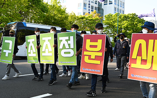 【노동조건】 우리는 노동시간 단축과 생활임금확보, 고용안정, 다치지 않고 일할 권리 확보 등 노동조건을 개선하기 위해 투쟁한다.