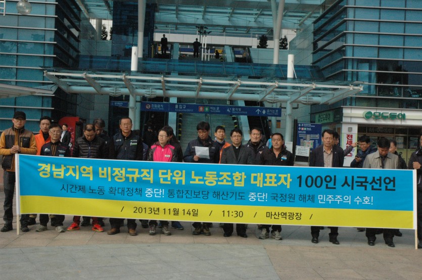 시간제노동 확대정책 중단! 통합진보당 해산기도 중단! 국정원 해체 민주주의 수호! 경남지역 비정규직 단위노조 대표자 100인 시국선언