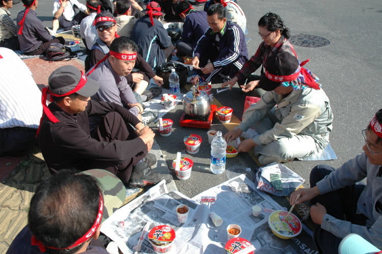 컵라면을 준비한 조도 있었고, 슬쩍 소주를 끼워서 먹는 사람들도 있었다. 아침을 먹고 왔음에도 40을 넘긴 중년 노동자들은 마치 어린 아이들처럼 맛있게 라면을 끓여 먹었다.