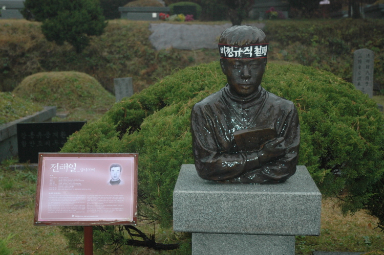11월 전국노동자대회를 하면 마창지역금속지회를 중심으로 해마다 모란공원 전태일열사 묘소 참배를 합니다.