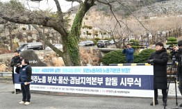 민주노총 경남지역본부가 1월 7일 고용노동부 창원지청 앞에서 기자회견을 열고, 원청교섭 쟁취, 모든 노동자의 노동 기본권 쟁취를 외쳤다. 이날 기자회견은 민주노총 주최로 전국 동시다발로 진행되었다.   김은형 민주노총 경남지역본부장 여는 발언에서 “얼마 전 솥발산 열사 묘역에서 26년 원청교섭 쟁취, 모든 노동자의 노동 기본권 실현, 교사·공무원의 정치 기본권 쟁취를 위한 투쟁을 결의했다. 수많은 열사를 가슴에 묻고 투쟁한 세월이었다”라고 말했다.   김 본부장은 “우리의 투쟁으로 부족하지만 노조법 2,3조 개정의 성과를 쟁취했다. 사용자성을 인정 받고, 원청교섭의 길은 열었지만, 노동자성은 개정되지 못했고, 노동부는 꼼수 시행령으로 모든 것을 되돌리려 한다. 올해 지난 20년 투쟁을 선봉적으로 했던 것처럼 선봉적인 투쟁을 전개하겠다”라고 밝혔다.   강인석 금속노조 거제통영고성조선하청지회장은 현장 발언에서 “지난 12월 26일 중노위는 하청지회의 원청 교섭권을 인정했다. 조선하청지회는 한화오션에 교섭 요구를 했지만, 3월 10일 개정 노조법 시행 이후, 대법원 판결 이후에 검토해보겠다는 말만 되풀이하고 있다”라며, “중노위 결정은 아무 효력이 없는 것인가? 22년 합법적 절차로 진행한 51일 파업 투쟁을 두고 불법이라고 외치던 자본은 중노위 결정을 대놓고 거부하고 있다. 노동부도 아무 조치를 하지 않고 있다. 이게 대한민국의 현실”이라고 지적했다.   강 지회장은 “우리는 이미 속아봤다. 비정규직보호법은 비정규직을 지키지 못했다. 원하청 교섭을 보장한다고 말하면서 시행령에 온갖 장치를 집어넣는 것은 자본의 핑계를 늘릴 뿐”이라고 지적했다.   교사·공무원의 정치기본권 쟁취를 촉구하는 김지영 전교조 경남지부장의 발언도 있었다.